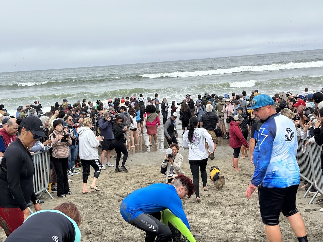 Photo from 2022 Dog Surfing World Championship, Pacifica CA, 6 August 2022. Photo by Jack Owicki.